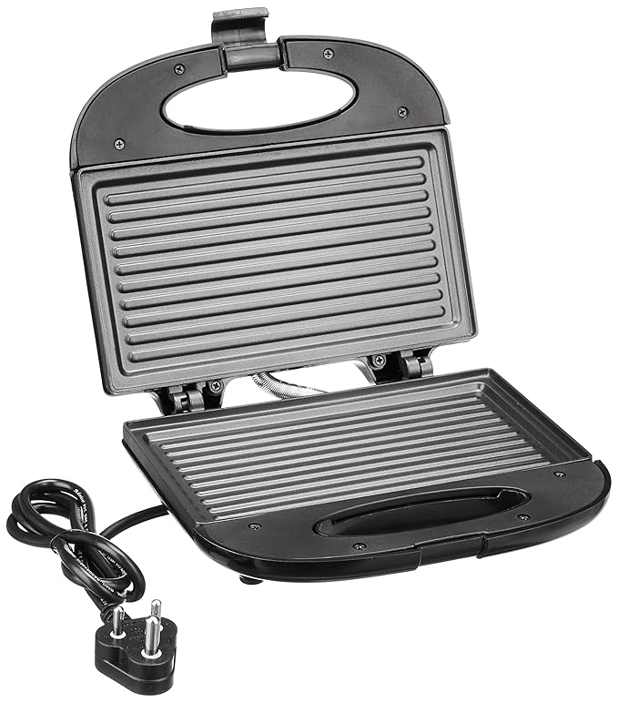 Advanced Heating Technology: Equipped with 800 watts of power and auto temperature control, this sandwich grill ensures efficient and consistent cooking for perfectly grilled sandwiches, bread, and kebabs.