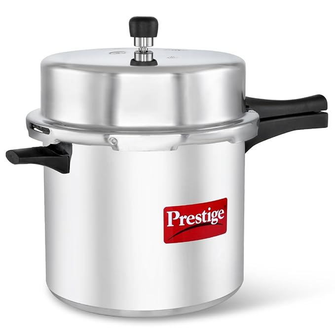 BODY: Prestige Popular is an outer lid pressure cooker made from virgin aluminium which is light in weight and long lasting. The outer lid feature is suitable for both separator cooking and direct vessel cooking.