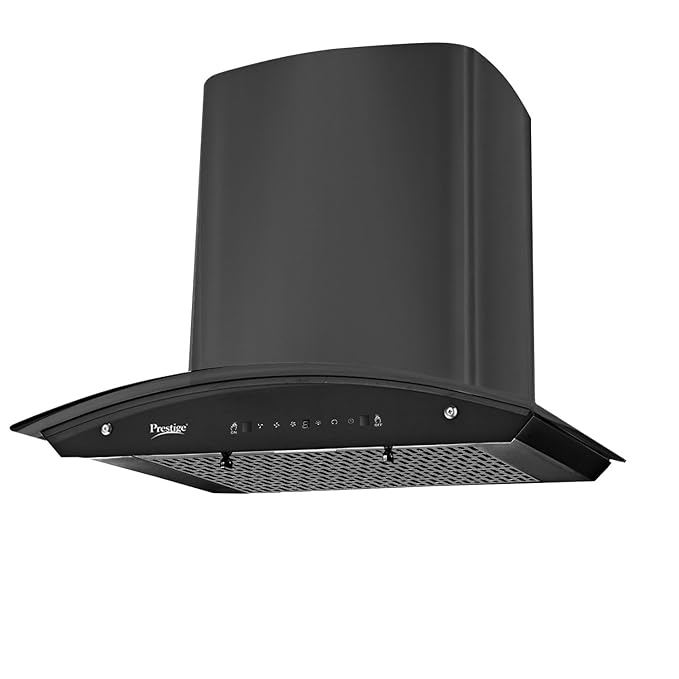 Prestige 180W Vista Deluxe 600 Glass Kitchen Hood chimney with Installation Kit 1200 m3/hr|2 LED Lamps|Filterless|Black