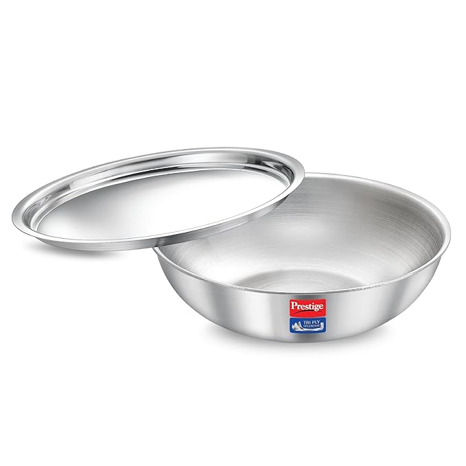 Prestige 20cm/1.6L Tri-Ply Stainless Steel Splendid Tasla with Lid|Gas and Induction Compatible|Even Heat Distribution| Thick Gauge Tri-Ply Body|15 Year Warranty
